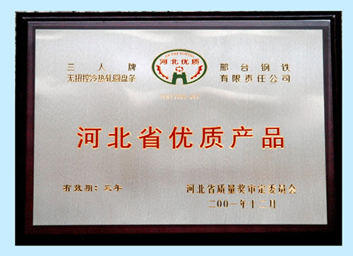 The Three Person brand hot rolled,torsion-free and controlled cooling wire was awarded the Quality Products of Hebei.