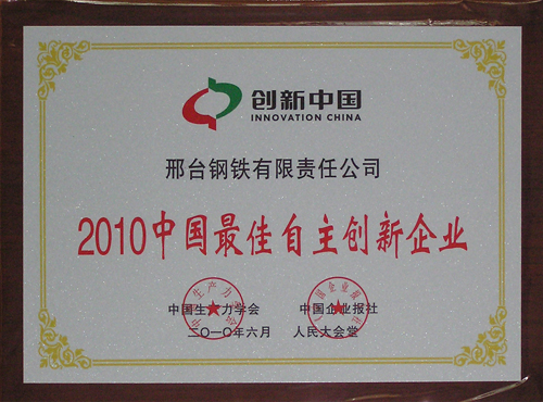 - 邢鋼榮獲“2010中國(guó)最佳自主創(chuàng)新企業(yè)”稱(chēng)號(hào)