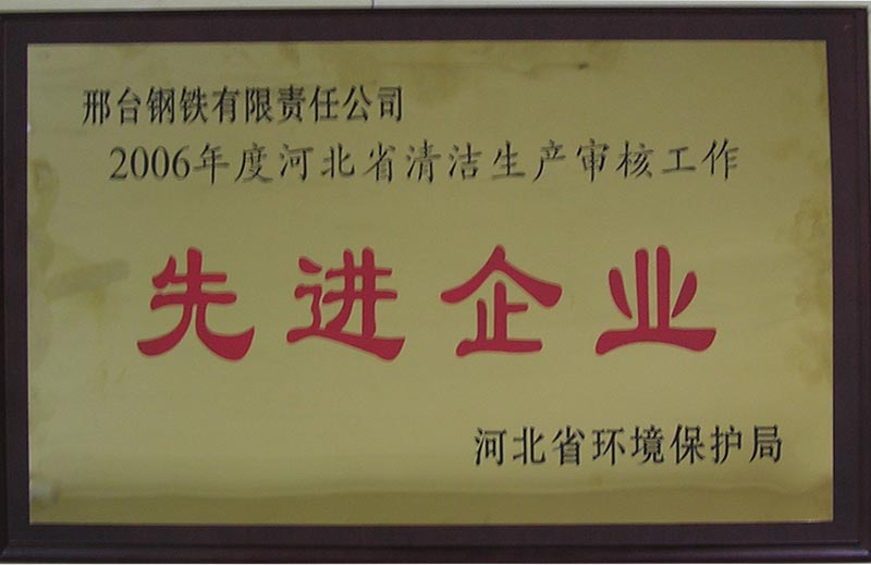 2007年8月,邢鋼榮獲河北省環(huán)保局頒發(fā)的“清潔生產(chǎn)審核先進(jìn)企業(yè)”榮譽(yù)稱號。