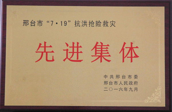 邢鋼被邢臺(tái)市授予“7?19” 抗洪搶險(xiǎn)救災(zāi)先進(jìn)集體榮譽(yù)稱號