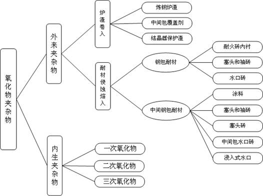 而外來夾雜主要是在鋼的熔煉、出鋼和澆鑄過程中,鋼液同耐火材料和爐渣相接觸,爐渣被卷入鋼液中(特別是出鋼的時候),耐火材料在高溫收到?jīng)_蝕,它的顆?;烊脘撘褐校@些情況都難以避免?;烊脘撘褐械哪突鸩牧虾蜖t渣顆粒通過與鋼液起化學(xué)反應(yīng)不斷在成分和結(jié)構(gòu)上發(fā)生變化。這些顆粒,不論是剛剛被機械地帶入鋼液中的,還是經(jīng)歷了相當(dāng)變化的,一旦被滯留到鑄件中,就變成了鋼中的夾雜物,這些就叫外來夾雜物。外來一般來說尺寸較大,外形不規(guī)則,結(jié)構(gòu)復(fù)雜,只是偶然在這里或者那里出現(xiàn)。夾雜物的來源和分類下圖。