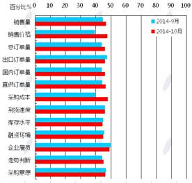 蘭格鋼鐵信息研究中心統(tǒng)計發(fā)布2014年10月鋼鐵流通業(yè)PMI總指數(shù)為47.8,環(huán)比微升0.6個百分點(diǎn)(見圖1),顯示鋼鐵流通市場活躍度略有好轉(zhuǎn)。從各項分指數(shù)看,10月份鋼鋼鐵流通業(yè)PMI調(diào)查的10項分指數(shù)5升5降。其中,企業(yè)銷量增加,下游訂單增加,但企業(yè)對后市較為謹(jǐn)慎,采購意愿未增(見圖2)??傮w判斷11月鋼鐵流通市場需求景氣微升。