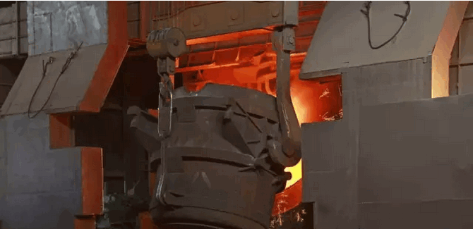 65t電弧爐采取的是鐵水經(jīng)兌鐵車由爐門進(jìn)入電弧爐,當(dāng)兌入高比例鐵水時,廢鋼加入量相對變少,在鐵水兌入過程中要避免爐內(nèi)的余鋼、余渣與鐵水發(fā)生劇烈反應(yīng)。在兌鐵初期,鐵水量要少,待爐內(nèi)反應(yīng)穩(wěn)定后,可加大兌入量。鐵水起兌速度要控制在0.2t/s,穩(wěn)定后待入速度控制在0.4t/s,總兌入時間達(dá)到4min以上,隨著鐵水比例的增加,總兌入時間延長。