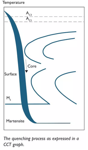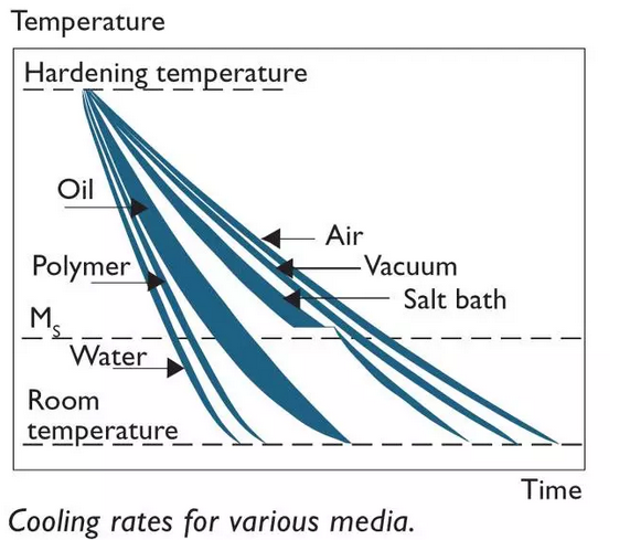在一個(gè)部件中可以獲得的最大冷卻速率取決于鋼的熱導(dǎo)率,淬火介質(zhì)的冷卻能力和部件的橫截面積。