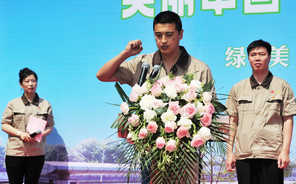 煉鐵廠職工侯浩然代表5000名職工宣誓,將積極參加車(chē)間、現(xiàn)場(chǎng)環(huán)境美化行動(dòng),用好污染防治設(shè)施,爭(zhēng)當(dāng)遵守環(huán)保政策法規(guī)的行動(dòng)者,為綠美邢鋼,為邢臺(tái)市“藍(lán)天保衛(wèi)戰(zhàn)”,做出自己的貢獻(xiàn)。