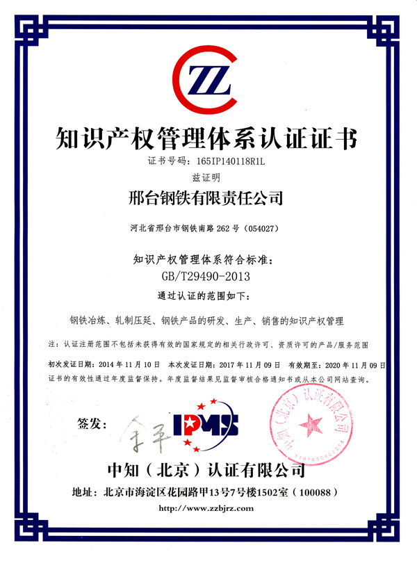 邢鋼是河北省首批《企業(yè)知識產(chǎn)權(quán)管理規(guī)范》試點(diǎn)企業(yè),從2012年開始推行《企業(yè)知識產(chǎn)權(quán)管理規(guī)范》貫標(biāo)工作,建立了貫穿企業(yè)生產(chǎn)經(jīng)營各環(huán)節(jié)的知識產(chǎn)權(quán)管理體系,2015年被認(rèn)定為國家知識產(chǎn)權(quán)優(yōu)勢企業(yè)。今年以來,針對新能源汽車用鋼、高強(qiáng)度焊釘用鋼、鋁包鋼絲用鋼、深沖套筒用鋼等,已形成專利16項(xiàng),獲授權(quán)4項(xiàng),極大的豐富了邢鋼高端鋼種系列,提高了企業(yè)的核心競爭力。