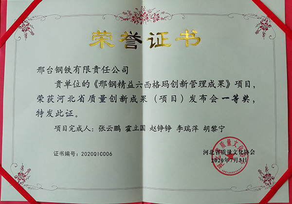 為激發(fā)萬眾創(chuàng)新熱情,提高創(chuàng)新質(zhì)量,促進(jìn)創(chuàng)新交流,河北省質(zhì)量文化協(xié)會于2020年7 月2日至3日在石家莊召開了河北省第三屆質(zhì)量創(chuàng)新成果(項(xiàng)目)發(fā)布會。經(jīng)申報材料評審,大會發(fā)表,專家評審,邢臺鋼鐵有限責(zé)任公司申報的4項(xiàng)質(zhì)量創(chuàng)新成果(項(xiàng)目)全部獲獎。