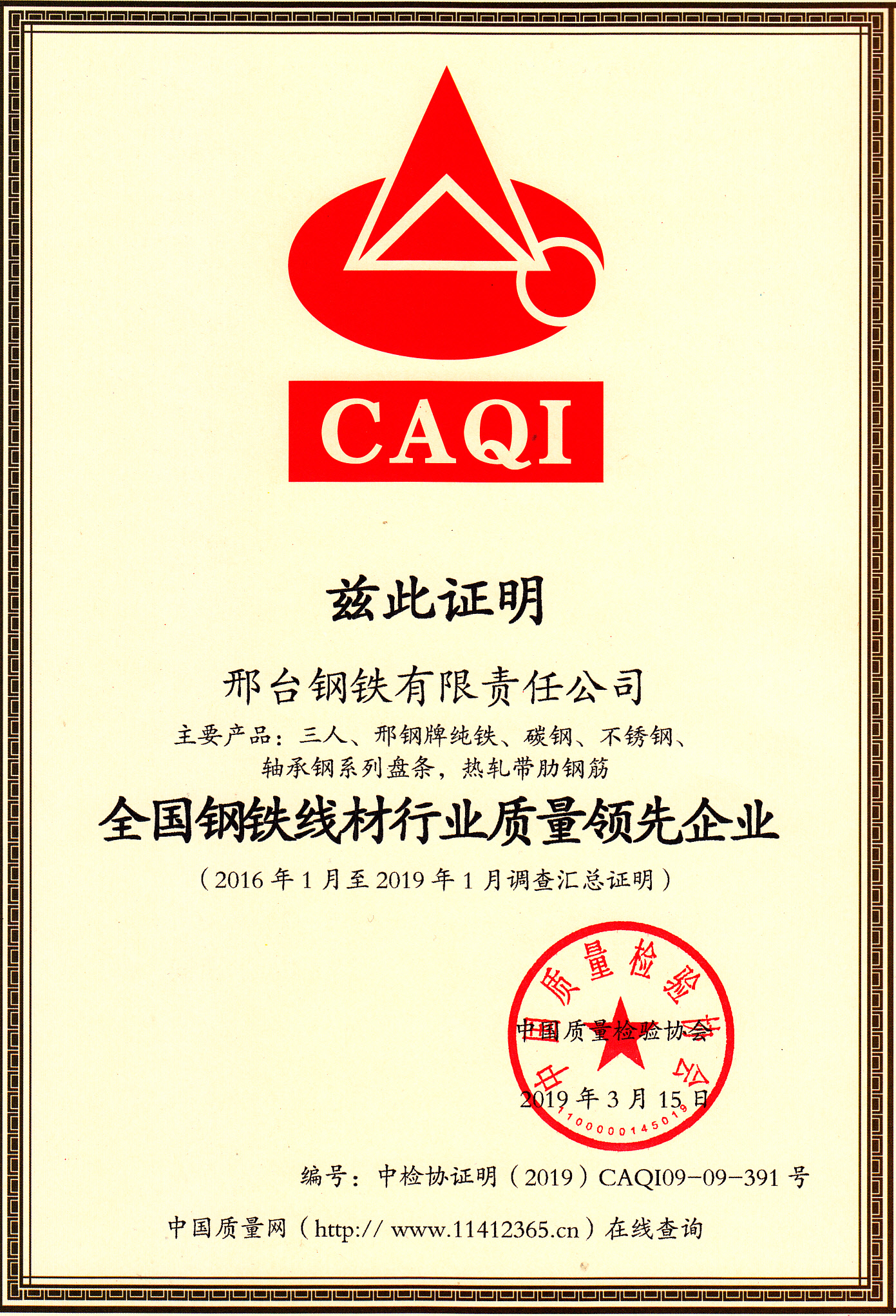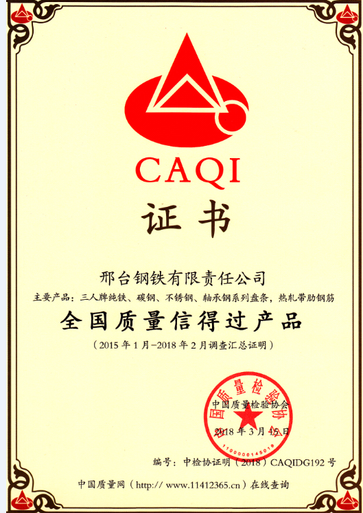 軸承鋼被稱為“鋼中之王”,頂級(jí)軸承鋼代表了特鋼企業(yè)的最高冶金水平,廣泛應(yīng)用于礦山機(jī)械、精密機(jī)床、冶金設(shè)備、重型裝備與高檔轎車等重大裝備領(lǐng)域和風(fēng)力發(fā)電、高鐵動(dòng)車及航空航天等新興產(chǎn)業(yè)領(lǐng)域,而邢鋼就是其中的行業(yè)佼佼者。2018年,邢鋼軸承鋼系列盤條被中國(guó)質(zhì)量檢驗(yàn)協(xié)會(huì)授予“全國(guó)質(zhì)量信得過(guò)產(chǎn)品”,2019年,再次斬獲“全國(guó)鋼鐵線材行業(yè)領(lǐng)先企業(yè)“殊榮,邢鋼軸承鋼系列產(chǎn)品多次獲得冶金產(chǎn)品實(shí)物質(zhì)量金杯獎(jiǎng)、冶金行業(yè)品質(zhì)卓越產(chǎn)品等榮譽(yù),現(xiàn)已成為邢鋼綠色鋼鐵產(chǎn)品的一道靚麗名片。