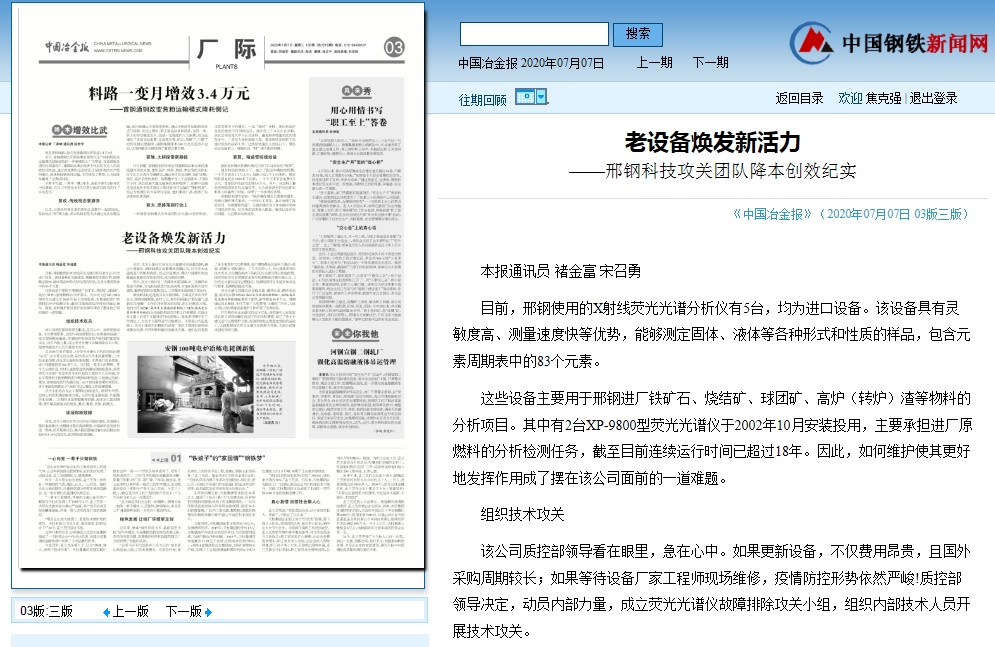 這些設備主要用于邢鋼進廠鐵礦石、燒結礦、球團礦、高爐(轉爐)渣等物料的分析項目。其中有2臺XP-9800型熒光光譜儀于2002年10月安裝投用,主要承擔進廠原燃料的分析檢測任務,截至目前連續(xù)運行時間已超過18年。因此,如何維護使其更好地發(fā)揮作用成了擺在該公司面前的一道難題。
