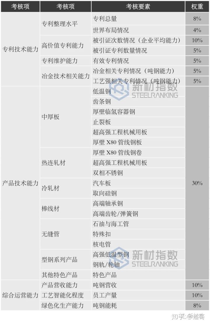 新材指數(shù)應用質(zhì)量分級理念,充分考慮企業(yè)技術資源和技術能力,從營收能力、綠色生產(chǎn)能力、工藝智能化的綜合運能力,以及產(chǎn)品能力和專利整理水平、高價值專利情況、專利維護能力和工藝技術強相關專利情況的專利布局能力等多個維度評價鋼鐵企業(yè)的技術競爭力。