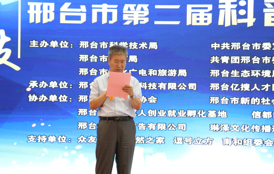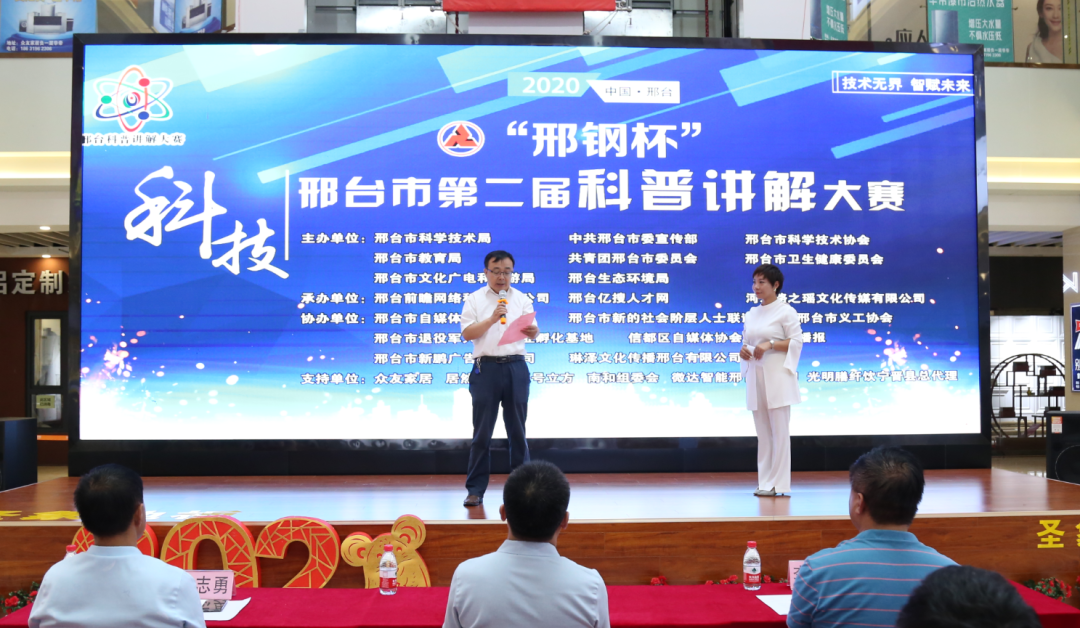 8月15日上午,由邢臺(tái)市科學(xué)技術(shù)局、中共邢臺(tái)市委宣傳部、邢臺(tái)市科學(xué)技術(shù)協(xié)會(huì)、邢臺(tái)市教育局、共青團(tuán)邢臺(tái)市委員會(huì)、邢臺(tái)市衛(wèi)生健康委員會(huì)、邢臺(tái)市文化廣電和旅游局、邢臺(tái)市生態(tài)環(huán)境局聯(lián)合舉辦的“邢鋼杯”2020邢臺(tái)市第二屆科普講解大賽啟動(dòng)儀式在邢臺(tái)眾友家居活動(dòng)廳舉行。