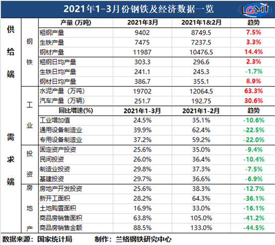 蘭格追蹤:2021年1-3月鋼鐵及經(jīng)濟(jì)數(shù)據(jù)一覽