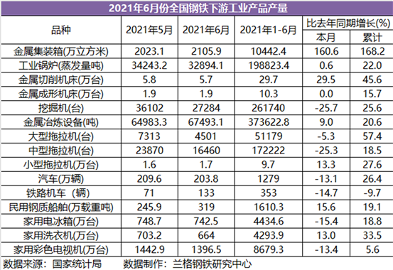 蘭格追蹤:2021年1-6月份全國鋼鐵下游工業(yè)產(chǎn)品產(chǎn)量