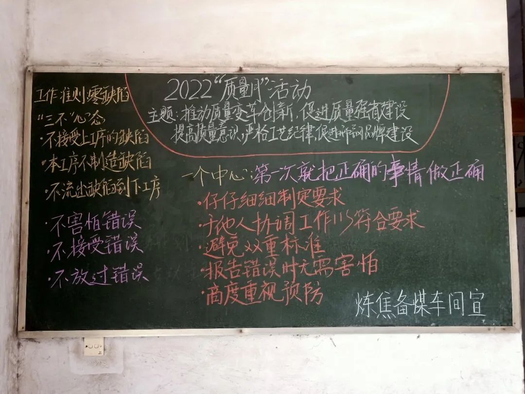為開展好“質(zhì)量月”活動,公司提前策劃活動安排,設立公司級“質(zhì)量月”領導小組,明確責任。公司及各二級單位在主要辦公區(qū)域、生產(chǎn)場所等醒目位置懸掛標語、張貼海報,利用內(nèi)網(wǎng)、報刊及微信工作群、工作例會班前班后會等多種形式進行廣泛宣傳,引導全體職工投身“質(zhì)量月”活動。