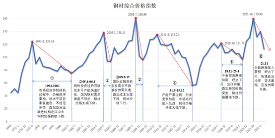 圖1 1990年以來我國鋼材價(jià)格綜合指數(shù)變化趨勢(shì)