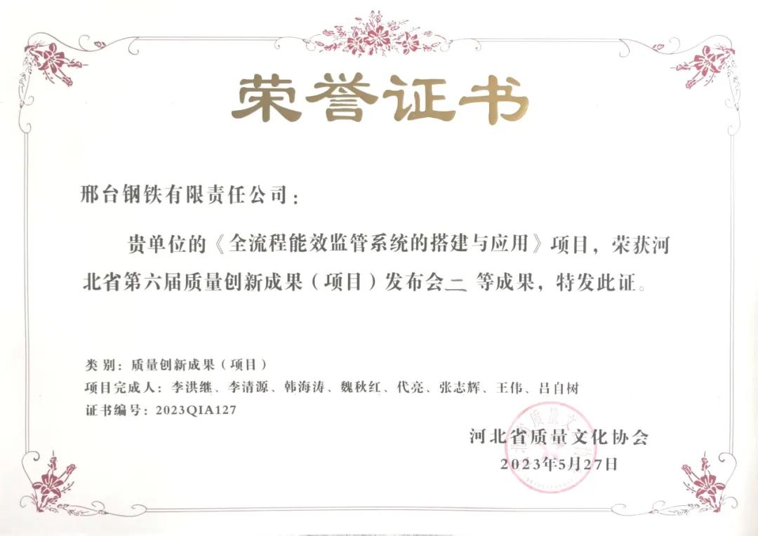 多年來,秉承“干成事”的核心價(jià)值觀,積極踐行特鋼精品戰(zhàn)略,邢鋼在轉(zhuǎn)型升級(jí)的高質(zhì)量發(fā)展過程中,走出了一條創(chuàng)新型標(biāo)桿道路。作為河北省質(zhì)量文化協(xié)會(huì)會(huì)員單位,邢鋼已連續(xù)多年應(yīng)邀參加“河北省質(zhì)量創(chuàng)新成果發(fā)布會(huì)”,截至目前,邢鋼已經(jīng)累計(jì)榮獲河北省質(zhì)量創(chuàng)新示范級(jí)成果12項(xiàng)、專業(yè)級(jí)成果11項(xiàng)、改進(jìn)級(jí)成果5項(xiàng)。