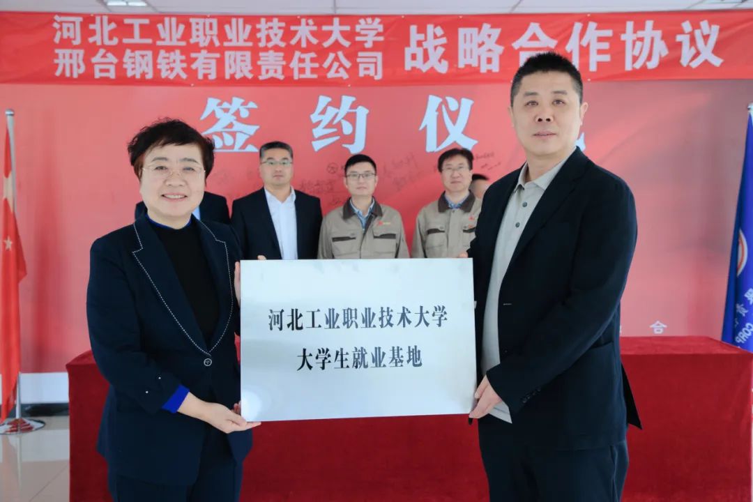 在與會(huì)人員的共同見(jiàn)證下,雙方代表簽訂了校企合作協(xié)議。還分別進(jìn)行了“河北工業(yè)職業(yè)技術(shù)大學(xué)大學(xué)生就業(yè)基地”、“河北工業(yè)職業(yè)技術(shù)大學(xué)實(shí)踐教學(xué)基地”、“邢臺(tái)鋼鐵有限責(zé)任公司人力資源培訓(xùn)基地”授牌互認(rèn)。