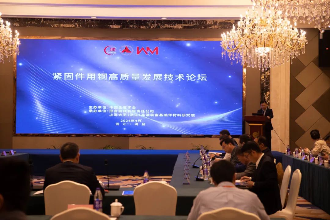 為了促進我國緊固件用冷鐓鋼的高質量發(fā)展,共創(chuàng)緊固件產(chǎn)業(yè)新質生產(chǎn)力。4月19日,中國金屬學會、邢臺鋼鐵有限責任公司、上海大學聯(lián)合主辦的緊固件用鋼高質量發(fā)展技術論壇在“緊固件之鄉(xiāng)”浙江嘉興海鹽縣隆重舉行。中國金屬學會副理事長兼秘書長王新江、邢鋼黨委書記兼董事長張育明、海鹽縣副縣長章劍鋒、浙江省緊固件行業(yè)協(xié)會秘書長沈家華、上海大學(浙江)高端裝備基礎件材料研究院(簡稱:“上善院”)院長董瀚出席論壇并作主旨講話。