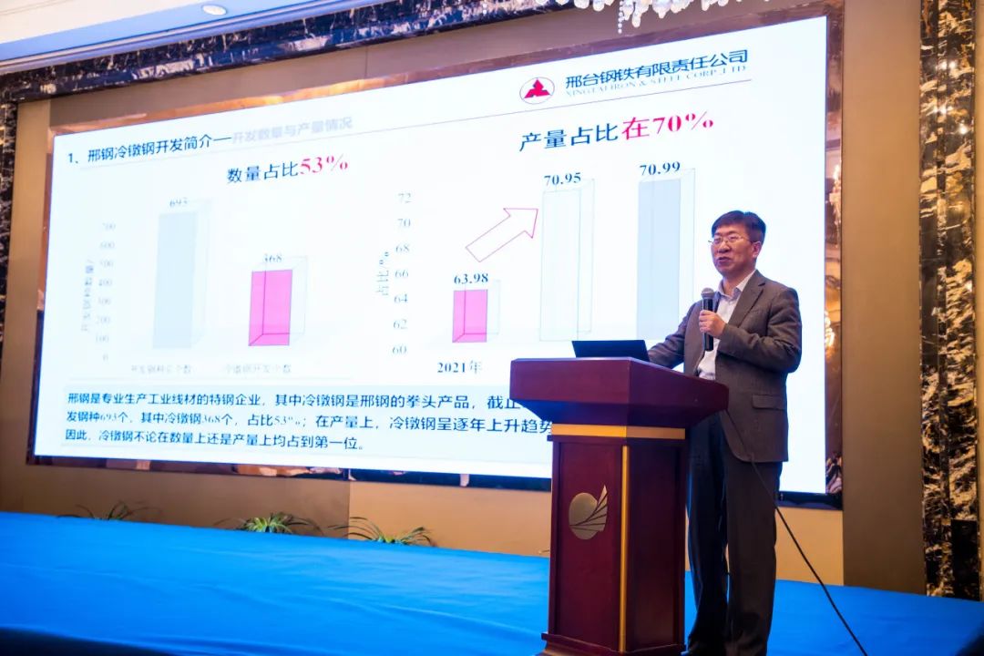 期間,邢鋼總經(jīng)理彭世丹作了《新規(guī)劃引領新未來,新邢鋼再鑄新輝煌》報告,邢鋼董事長助理、總工程師田新中作了《緊固件用鋼的開發(fā)和質量控制技術》報告。浙江國檢檢測技術公司副總經(jīng)理王慧、晉億公司質量技術部經(jīng)理張勇、中化創(chuàng)新研究院雙碳咨詢事業(yè)部總經(jīng)理劉通、上善院研發(fā)工程師楊現(xiàn)亮、南京工程學院教授趙秀明、上海納特汽車標準件公司研發(fā)總監(jiān)李軍正分別進行了行業(yè)技術報告分享。