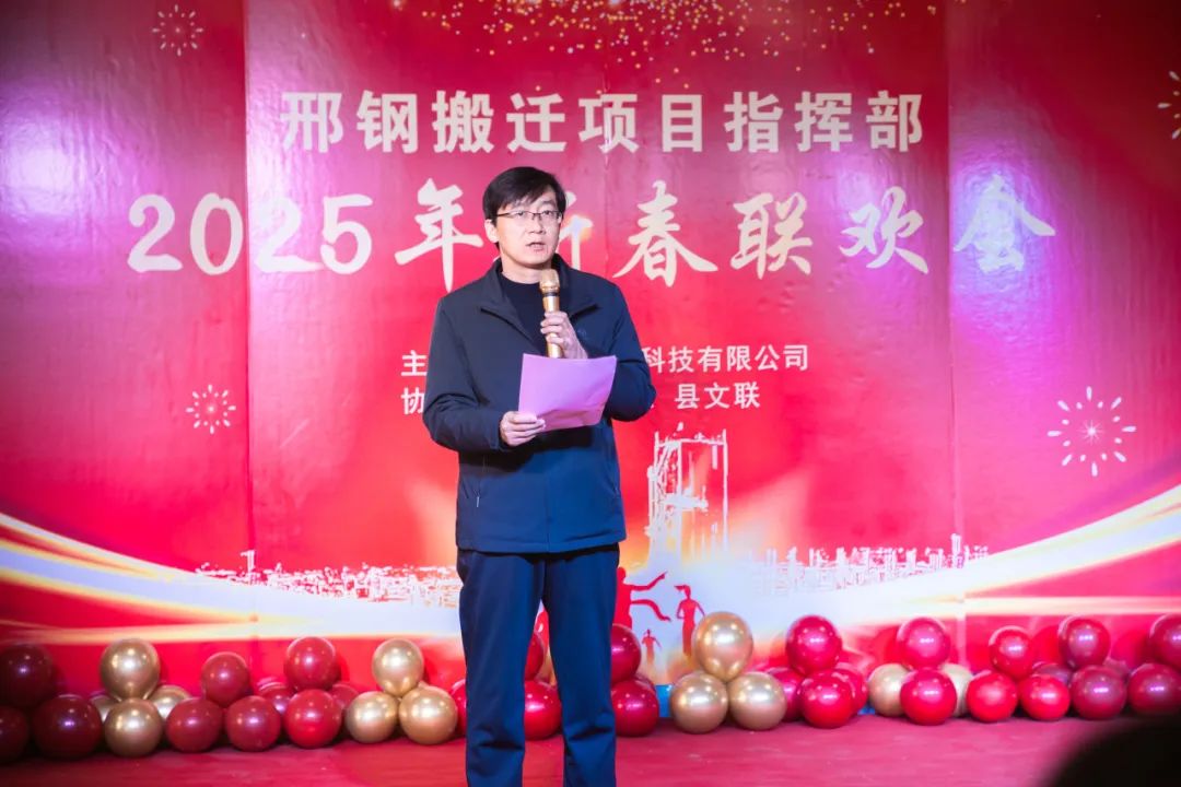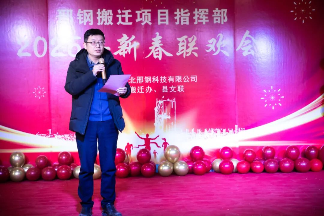在熱烈、融洽的氣氛中,聯(lián)歡會拉開帷幕。威縣縣委常委、宣傳部長、搬遷專班班長白鋒發(fā)表致辭。他代表威縣縣委、縣政府,向所有關(guān)心支持邢鋼搬遷改造項目的各級領(lǐng)導(dǎo)和參與建設(shè)的同志們表達(dá)了崇高的敬意和衷心的感謝。并高度評價了邢鋼人在過去一年中展現(xiàn)出的團結(jié)協(xié)作、頑強拼搏的精神,表示威縣政府將繼續(xù)全力支持邢鋼搬遷項目,推動項目早日建成投產(chǎn),為威縣經(jīng)濟發(fā)展做出更大貢獻(xiàn)。