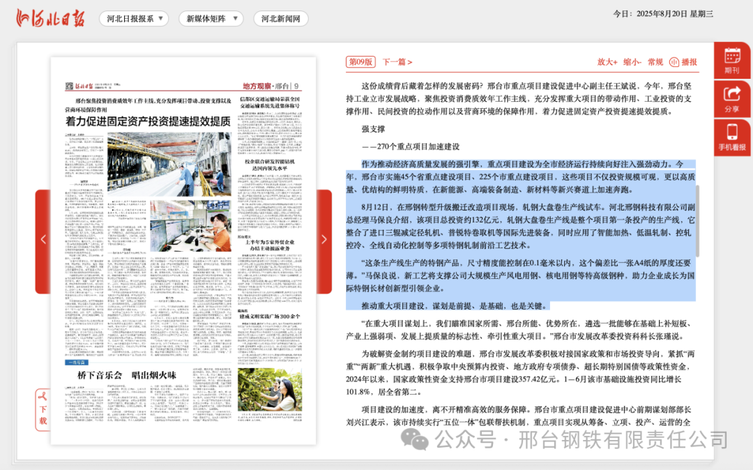 《河北日報》關(guān)注邢鋼轉(zhuǎn)型升級項目進(jìn)展最新報道
